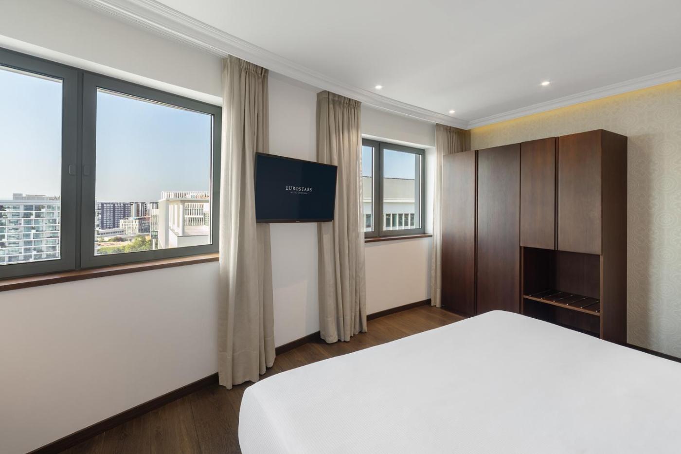 Eurostars Universal Lisboa situa-se em Lisboa, a 5 minutos a pé de Oceanário de Lisboa, e dispõe de acomodações com uma piscina exterior sazonal, estacionamento privado, um centro de fitness e um jardim. Este hotel de 5 estrelas dispõe de um restaurante, quartos com ar condicionado, acesso Wi-Fi gratuito e casa de banho privativa. O alojamento apresenta serviço de quartos, um centro de negócios e depósito de bagagens.
