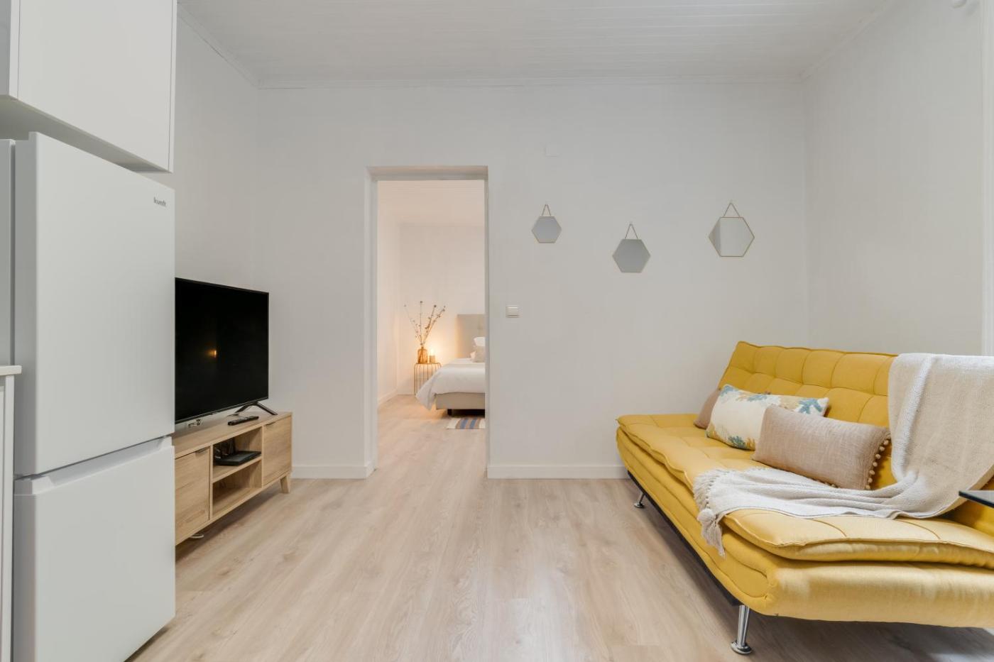 Este apartamento tem 1 quarto, cozinha com um frigorÃfico e um forno, uma televisão de ecrã plano, uma área de estar e 1 casa de banho dispondo de chuveiro. Toalhas e roupa de cama são providenciadas neste apartamento.